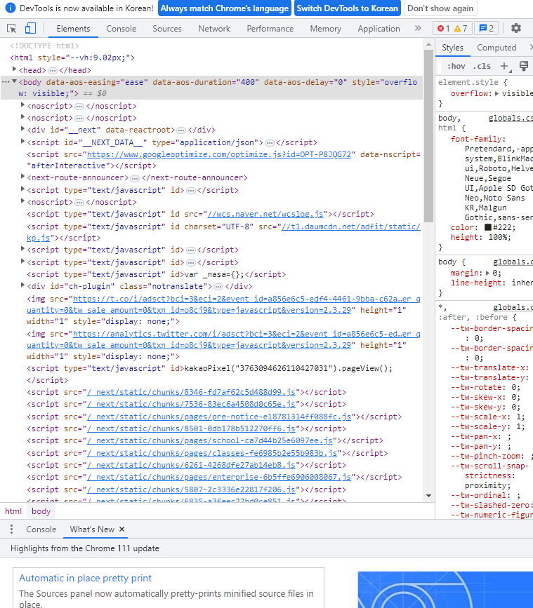 개발자 도구에서 코드를 수정하면, 현재 본인이 사용하고 있는 브라우저 상에서 수정된 코드대로 변화된 상태를 확인할 수 있다. 당연하지만 서버에는 반영되지 않는다. 본인이 보고 있는 브라우저에만 해당된다.