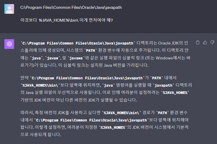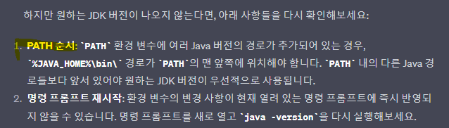 GPT에게 물어보니, PATH 내 java 버전 경로들의 순서를 확인하라고 한다.