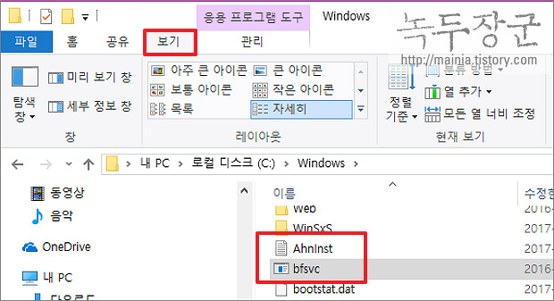 ▼ 그림처럼 확장자가 보이지 않는 파일들이 있습니다. 어떤 확장자 인지 보고 싶다면 [보기] 탭을 클릭합니다.