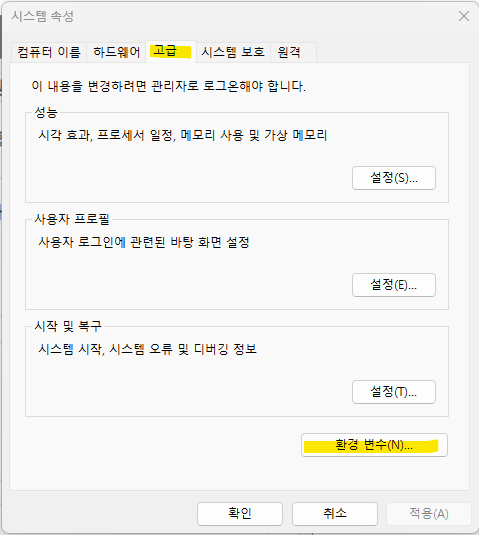 그러므로, 이번에 다운받은 jdk로 잘 작동되도록, 시스템 속성에서 환경변수를 변경해주자!
