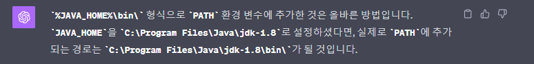 (path 내부 경로들을 아까처럼 %JAVA_HOME%\bin\을 맨 아래에 두면, 당연하게도 다시 jdk19 버전이 뜬다.)
