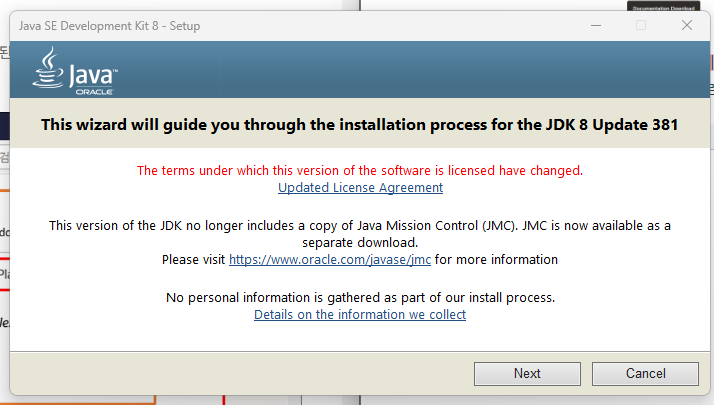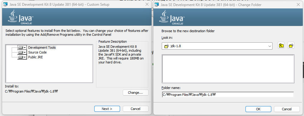 JDK의 설치가 시작되려하자, jre 설치도 뜬다. 이건 뭐지??? <- 자바 런타임 환경(Java Runtime Environment)라고 한다.