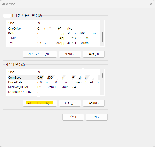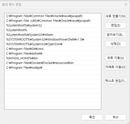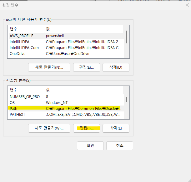 시스템 변수에서 Path 변수를 찾아 편집 버튼을 누른다.