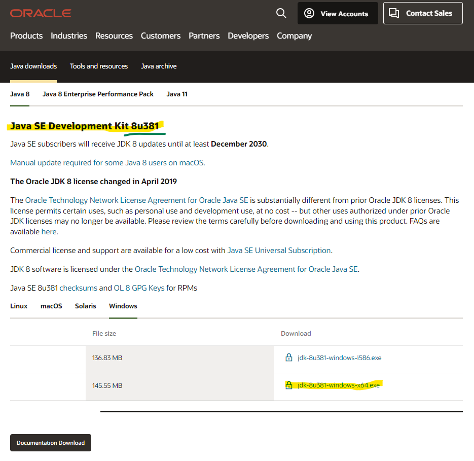 • Get the latest JDK (8u381) from http://www.oracle.com/technetwork/java/javase/downloads/jdk8-downloads-2133151.html .(<- html까지 하이퍼링크 걸려야 한다. https://www.oracle.com/java/technologies/downloads/#java8 여기로.)