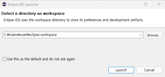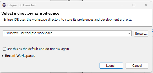 workspace 경로를 확인하고 Launch를 실행한다.