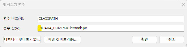 변수 값: .;%JAVA_HOME%\lib\tools.jar